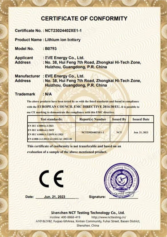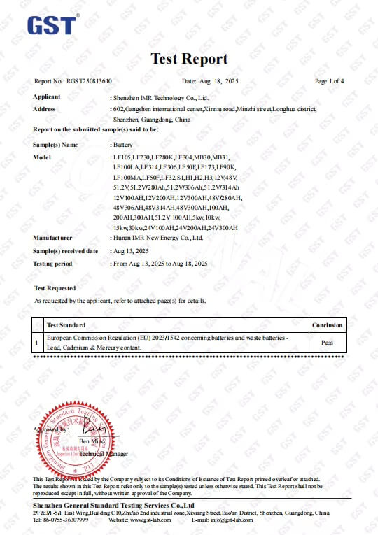 Our lithium battery products comply with major international safety and transportation standards, including CB. KC, PSE, CE, IEC, ISO, MSDS, andUN38.3, supporting global import and project requirements.