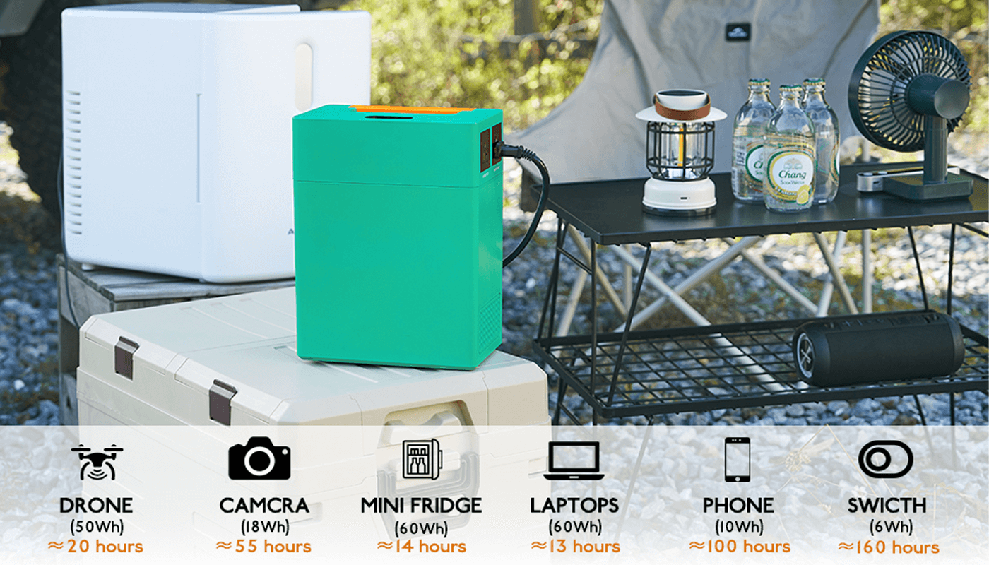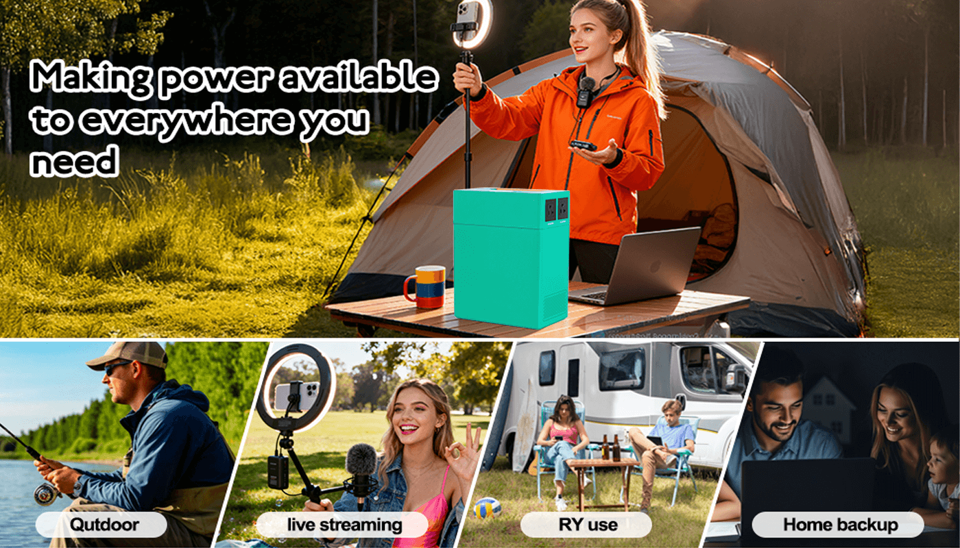 Power Center for Any Outdoor Activity: Portable generator Seamlessly running laptops, mini refrigerators, drones, power tools, and supporting outdoor activities such as camping, RV travel, live streaming, and emergency backup.