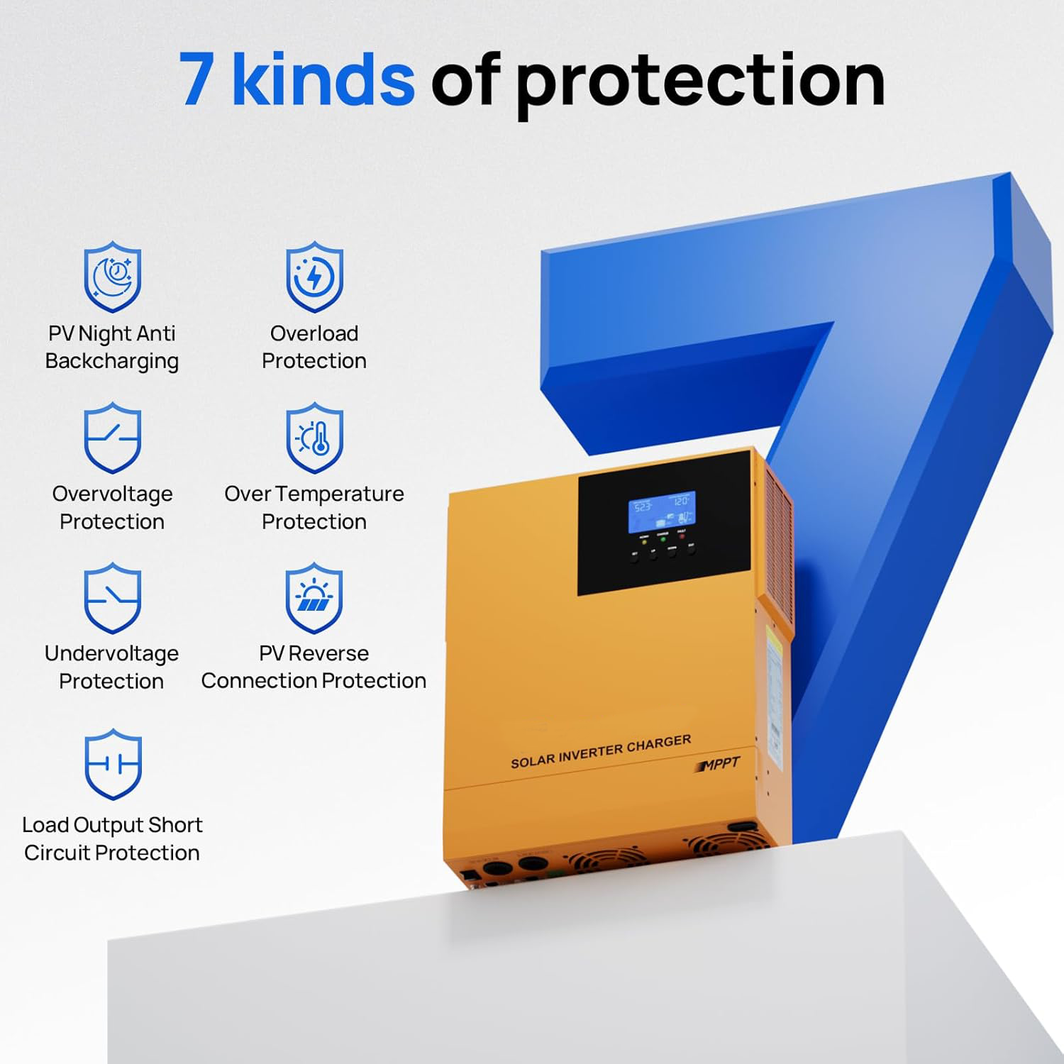 Seven Layers of Protection: Our product is equipped with seven protection functions, such as short-circuit protection, overload protection, and reverse connection protection. Say goodbye to potential electrical hazards and fully enjoy a safe life.